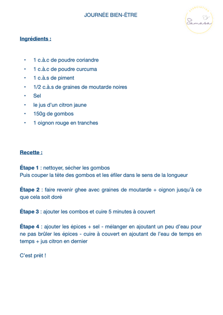 Les recettes ayurvédiques préparées lors de notre atelier :